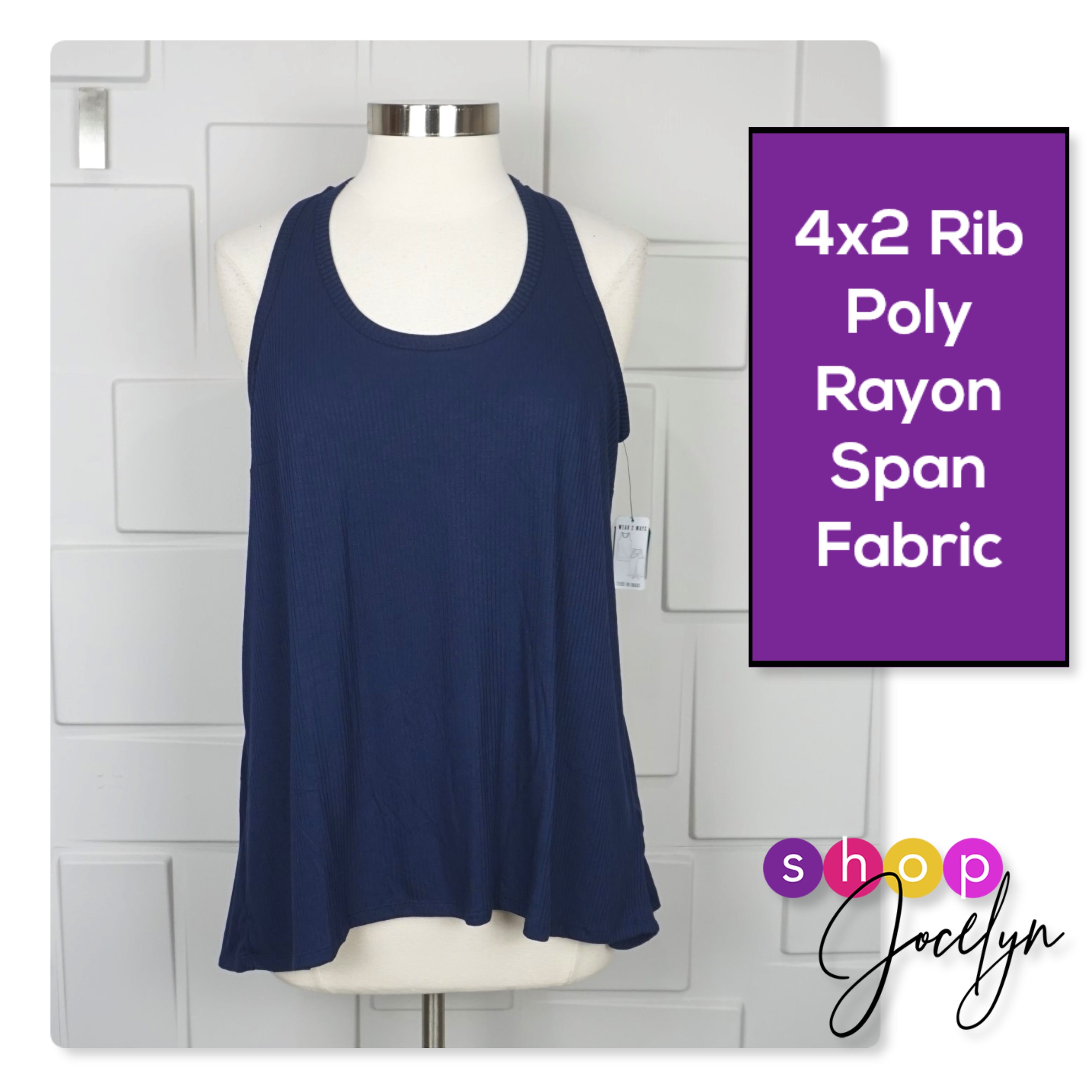 4x2 Rib - 87% Polyester / 9% Rayon / 4% Spandex